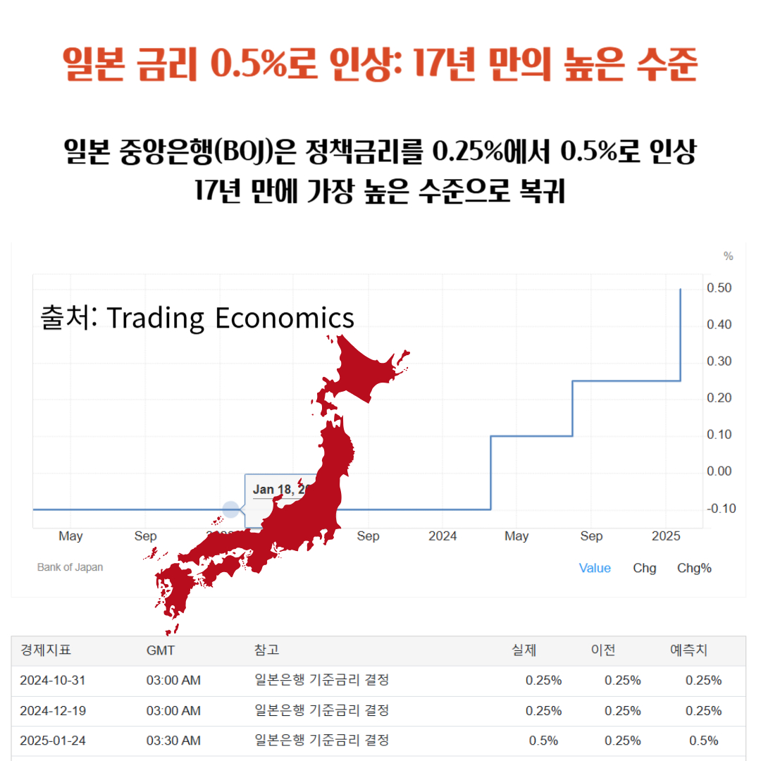 1. 일본 금리 0.5%로 인상: 17년 만의 높은 수준