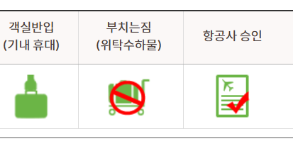 • 항공사별로 반입 가능 개수 및 승인 여부가 다를 수 있음.