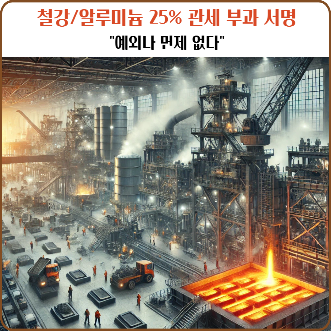 - 기존에는 일부 제품이 면제되었으나, 2025년 3월 12일부터 모든 철강 제품과 파생 철강 제품에 25% 관세 부과됨.