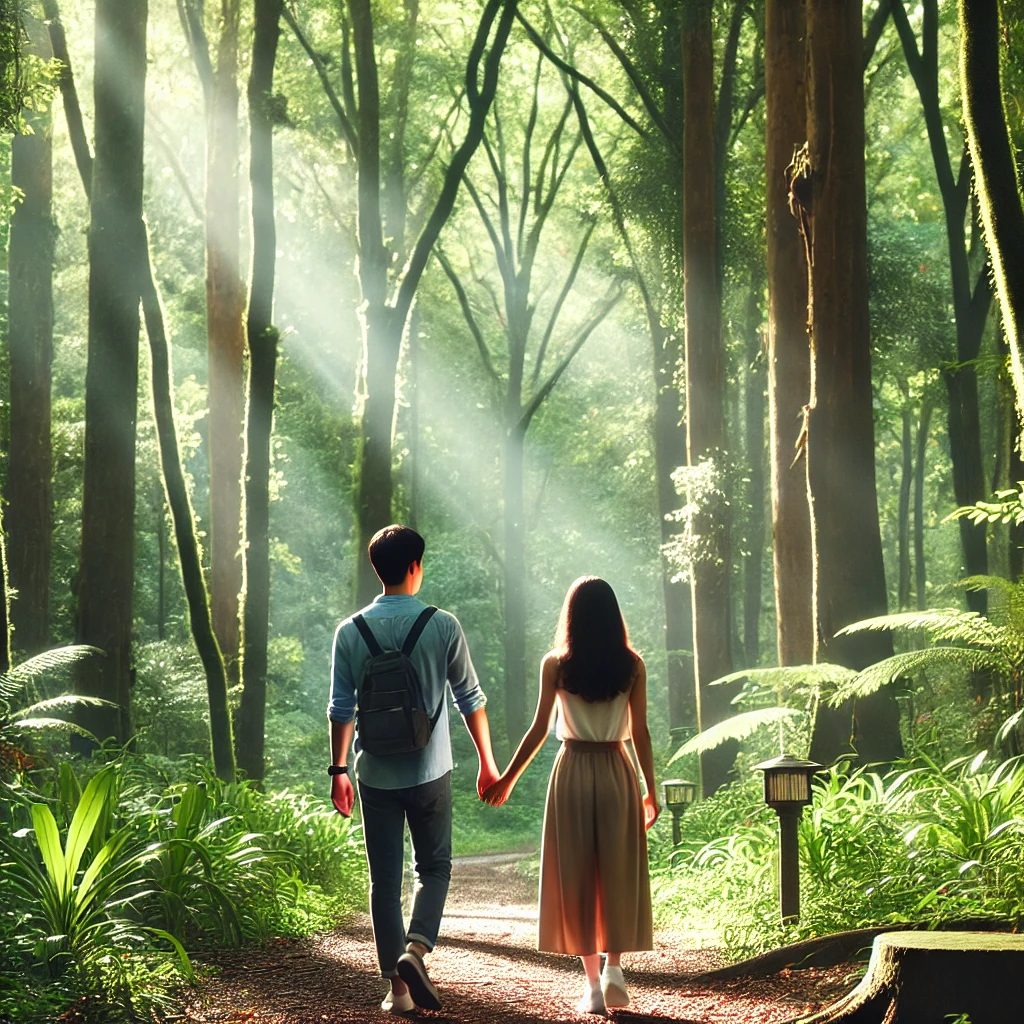 연인과 함께 산을 찾아가 산림욕을 즐기는 날