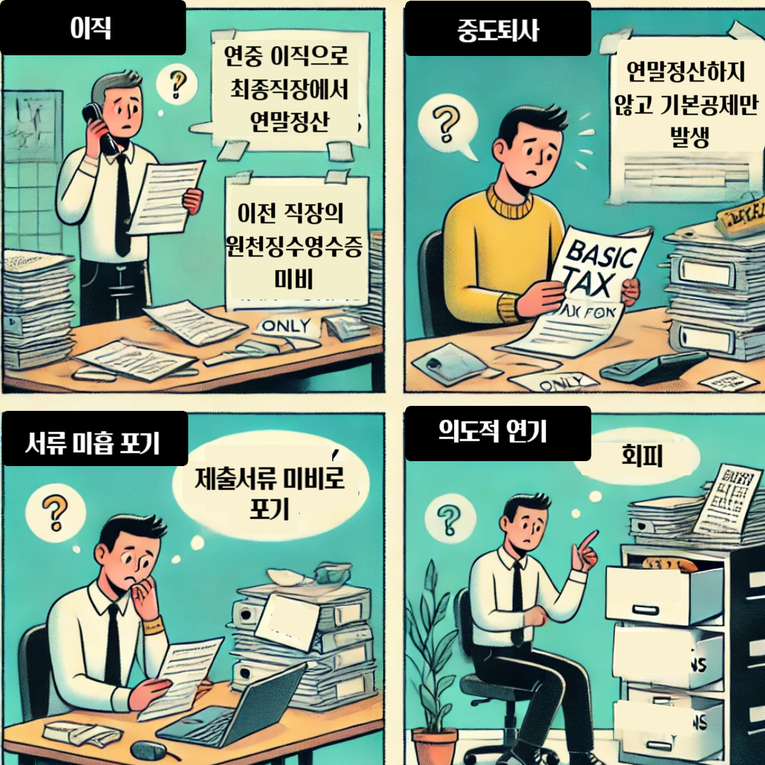 - 일부러 연말정산을 하지 않은 경우: 개인적인 사정으로 연말정산 시 공제를 누락했거나, 일부러 공제를 신청하지 않은 경우.