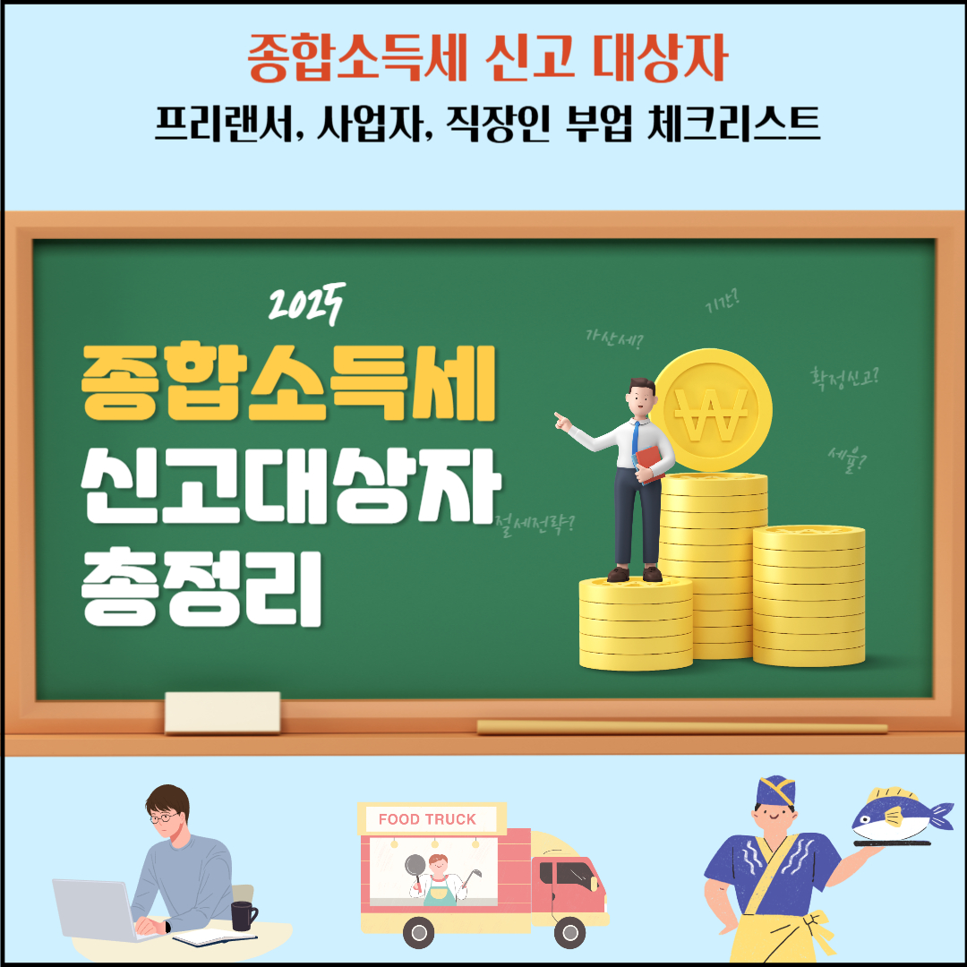 종합소득세 신고 대상자는 프리랜서, 개인사업자, 직장인 부업 소득자 등 다양한 소득 유형을 가진 사람들이 포함됩니다. 본 글에서는 종합소득세 신고 대상자를 쉽게 이해할 수 있도록 정리하고, 프리랜서 및 직장인 부업자들이 신고해야 하는 사항을 체크리스트로 제공합니다.