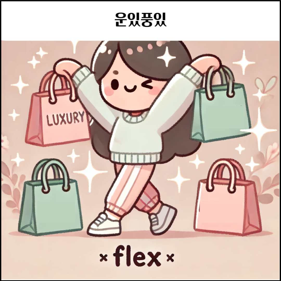 "플렉스(Flex)"는 자신의 경제력을 자랑하거나, 비싼 소비를 통해 과시하려는 행동을 의미하는 신조어입니다. 본래는 영어권 힙합 문화에서 유래한 표현으로, ‘근육을 과시하다’라는 의미의 ‘flex’가 발전해 ‘돈을 쓴다’, ‘부를 뽐낸다’는 뜻으로 확장되었습니다. 이 말은 MZ세대 사이에서 유행하면서, 고급 브랜드 소비, 럭셔리 여행, 명품 공개 등의 행위를 유쾌하고 재치 있게 표현할 때 자주 사용됩니다.