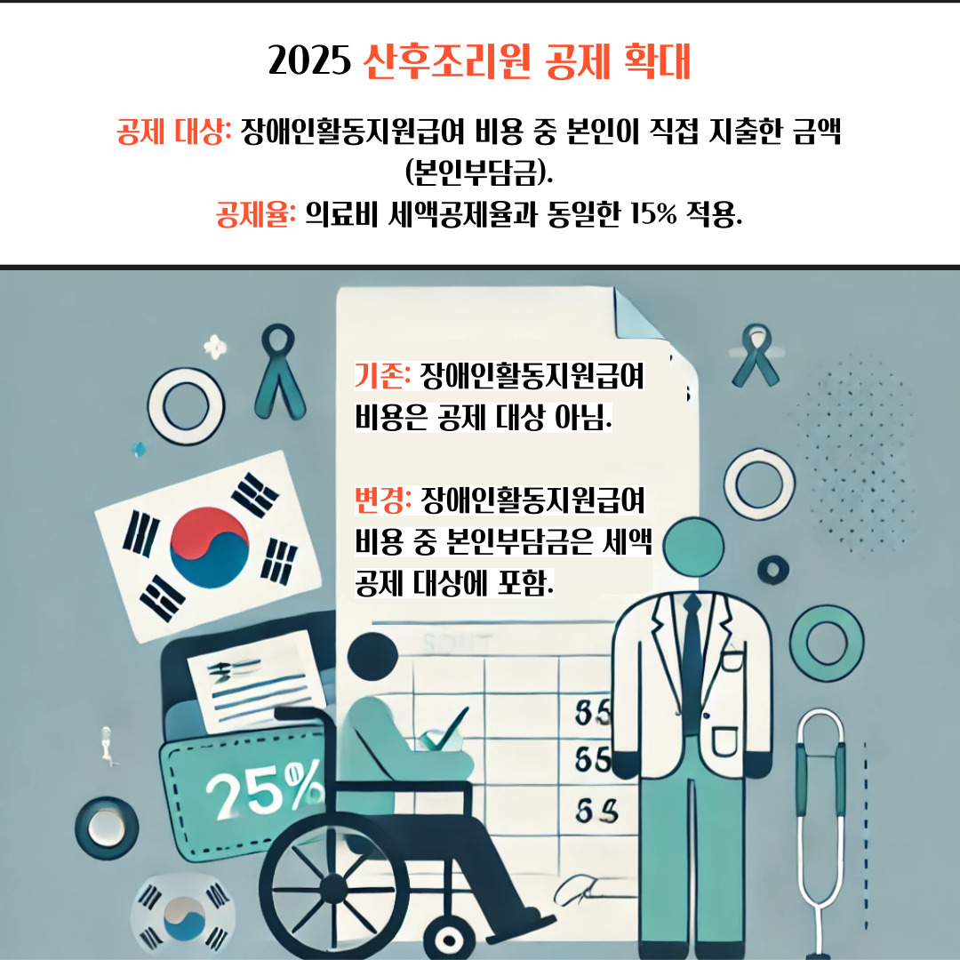 - 변경: 총급여 수준과 관계없이 산후조리원 비용 소득공제가 가능.