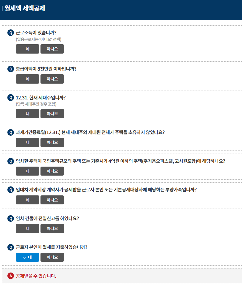- 월세액을 근로자가 본인 명의로 지급한 경우에만 공제됩니다.