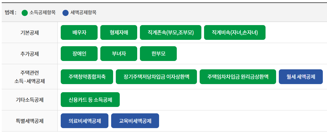• 기타: 국민기초생활보장법에 따라 수급자로 등록된 경우에만 공제 가능.
