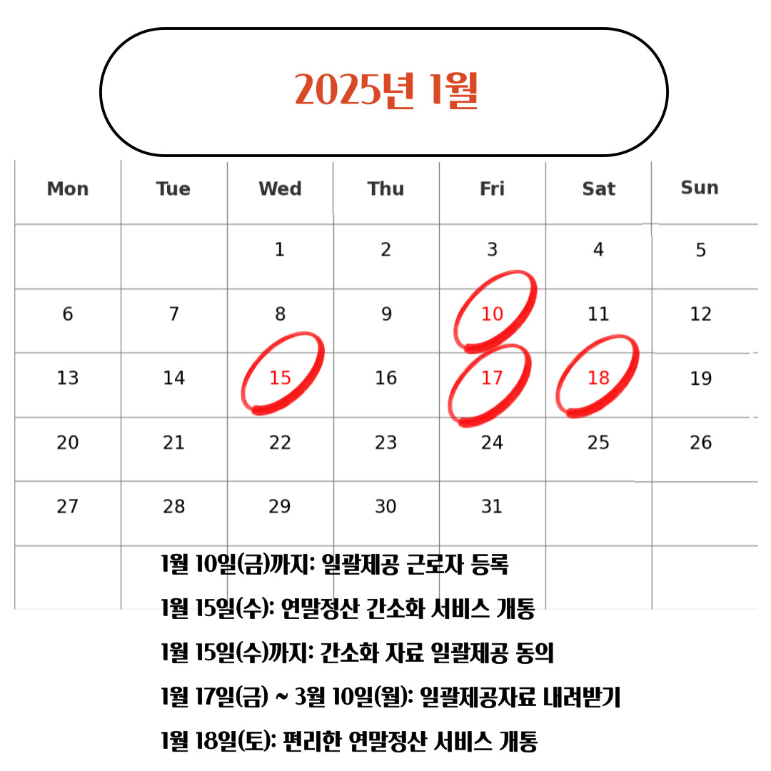 2025년 연말정산 일정 한눈에 보기