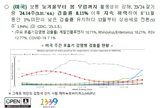 - 독감과의 비교: 현재 국내에서는 A형 독감(인플루엔자)이 HMPV보다 더 큰 유행 중입니다. 독감 검출률이 50.9%로 HMPV의 5.3%보다 훨씬 높습니다.