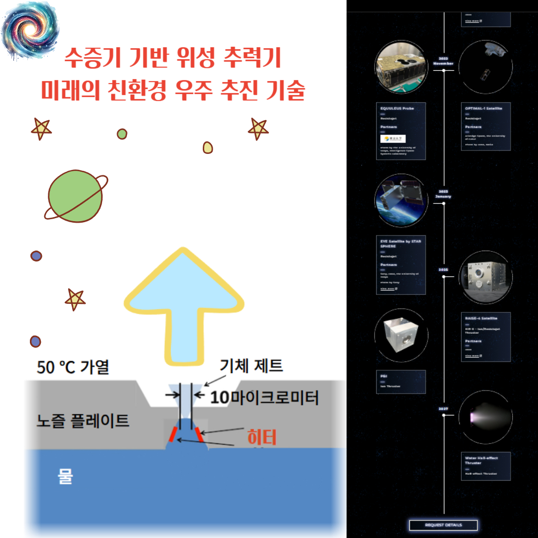 - 2010년대 초반: 유럽 우주국(ESA)이 소형 위성의 수증기 기반 추진 시스템 검토.