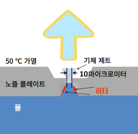 - 표면 장력을 이용해 초순수 탈이온수(deionized water)를 추진제로 사용.