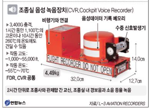 • CVR: 조종실 내 대화를 2시간까지 녹음.