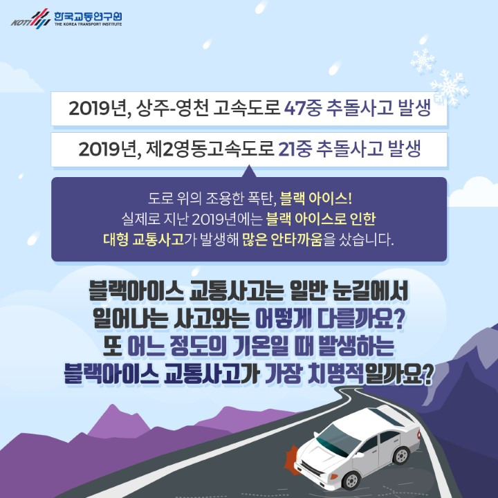 블랙아이스는 도로의 미끄러움을 극대화시켜 차량 사고를 유발하는 주요 요인 중 하나입니다.