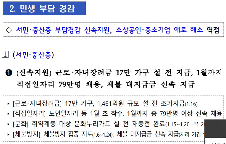 • 근로·자녀 장려금: 17만 가구에 설 명절 전 조기 지급 (1월 16일 확정)
