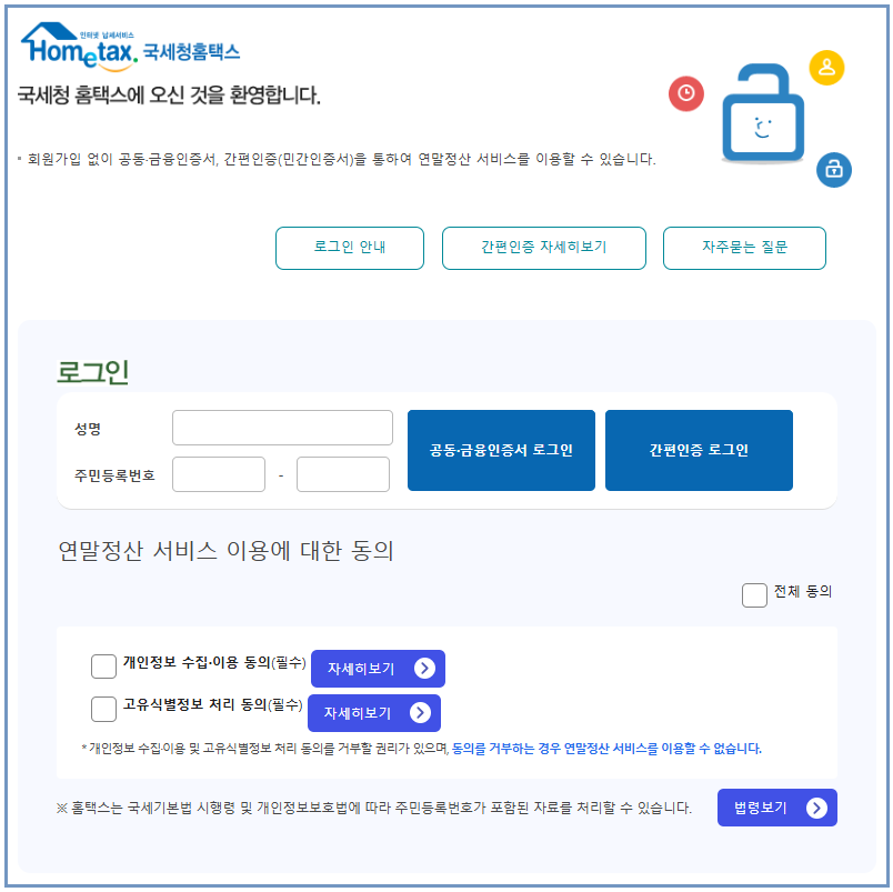 - 홈택스 웹사이트: 국세청 홈택스에 접속합니다.