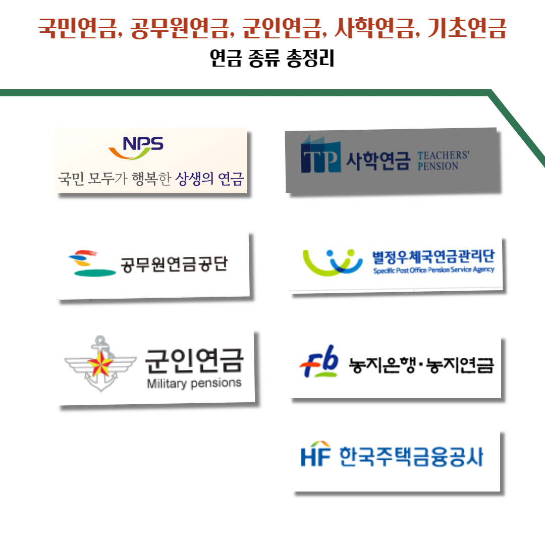 국민연금, 공무원연금, 군인연금, 사학연금, 기초연금 등, 연금 종류 총정리