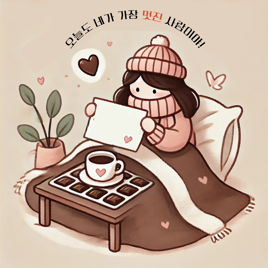 - "오늘도 네가 가장 멋진 사람이야! 내 사랑과 초콜릿이 힘이 되어주길 바라. 💝"