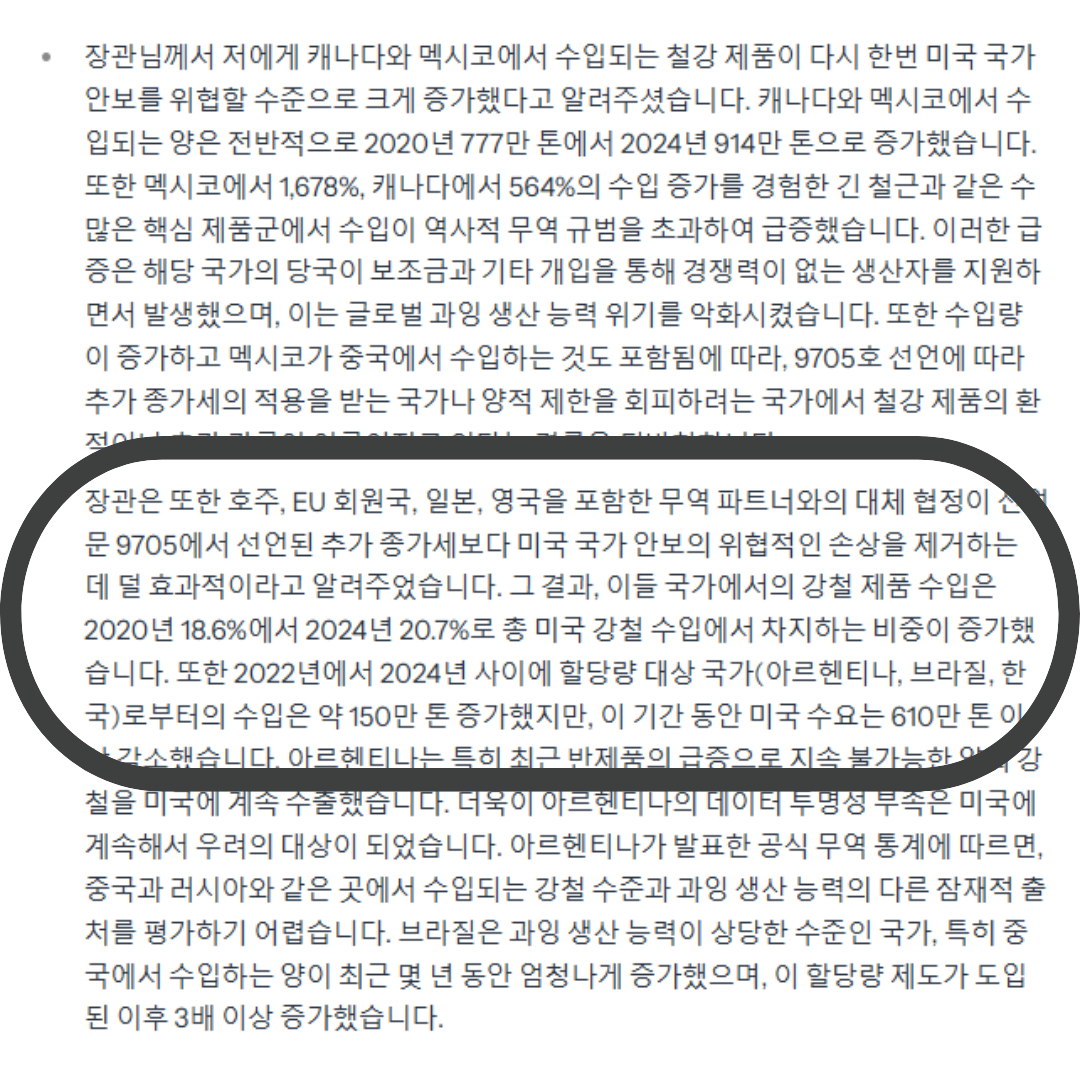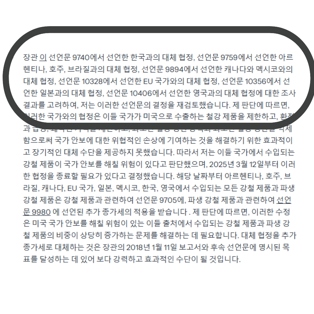 4. 한국산 파생 철강 제품도 25% 관세 적용