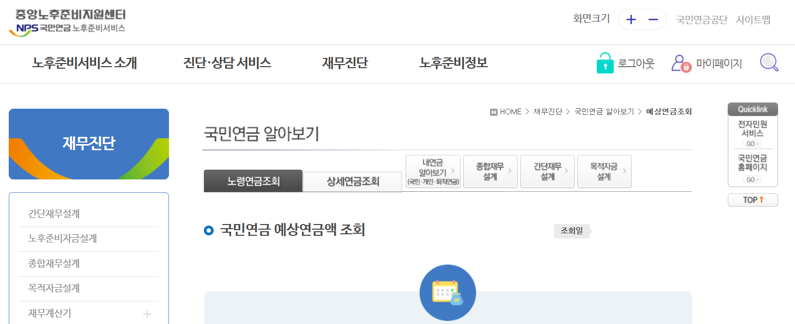 1. 예상 연금 수급액 확인